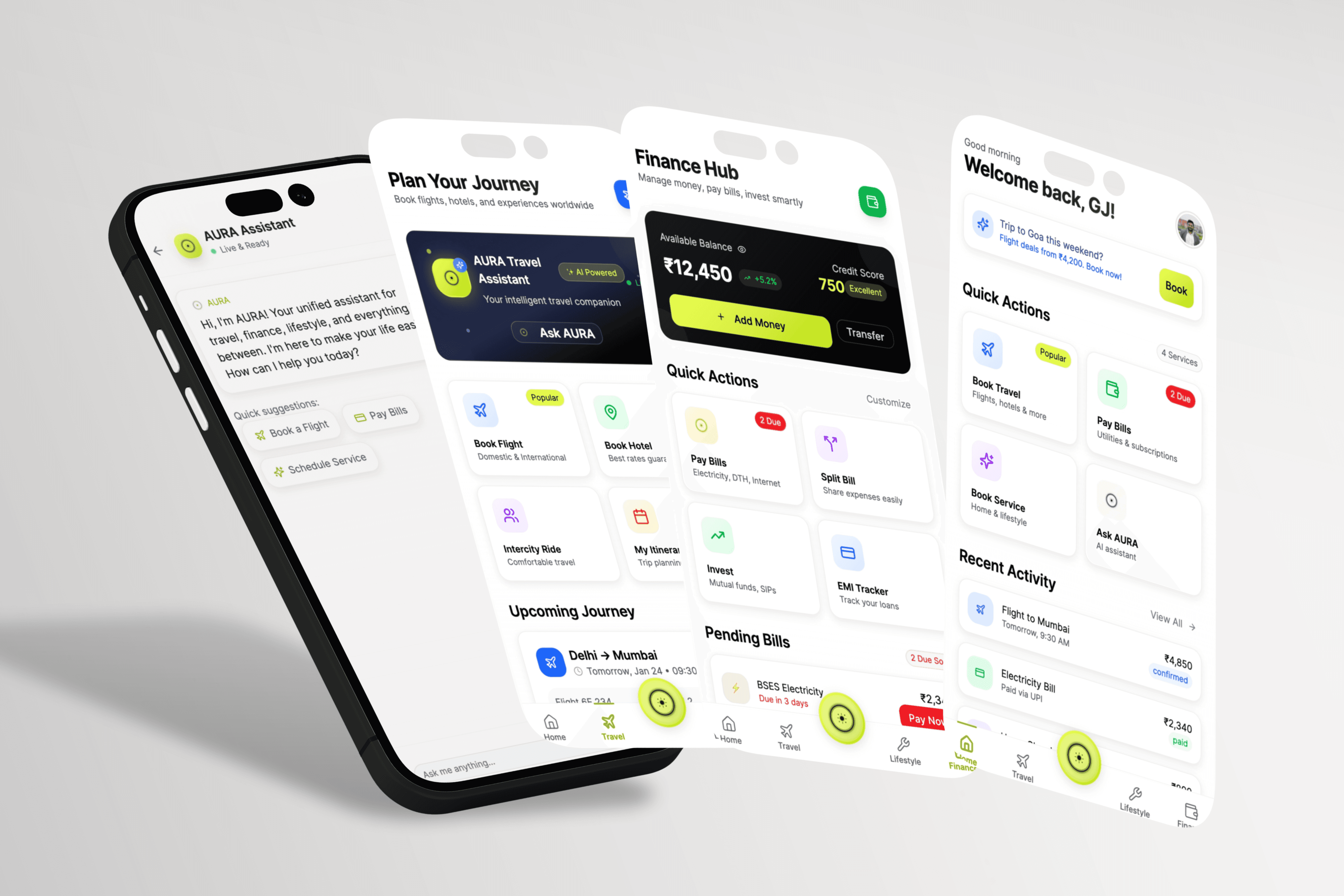 To conceptualize and design an intuitive, modular digital platform that would act as a central access point for consumers across travel bookings, personal finance management, and home & lifestyle services. The product needed to reduce fragmentation, improve discoverability, and encourage cross-service engagement via a personal AI assistant.